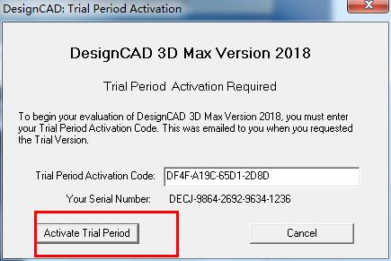 9、正常启动软件,DesignCAD 3D Max 2018将自动弹出注册提示,这时,我们将注册机生成的注册码填入下面框中,如下图所示: