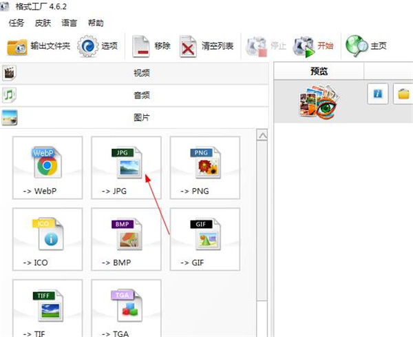 2、以要转换成“JPG”格式为例,打开软件后,点击“JPG”