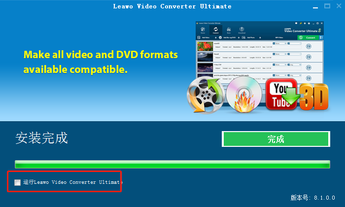 作为一个视频转换器,Leawo Video Converter Ultimate可以很容易地转换包括AVI,MP4,WMV,FLV,RMVB, MPEG,3GP,MKV,MP3,WMV,WAV,AAC,OGG,M4A等