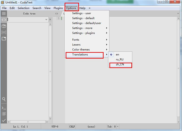 进入程序点击“Options”-“translations”选择“zh_CN”即可。
