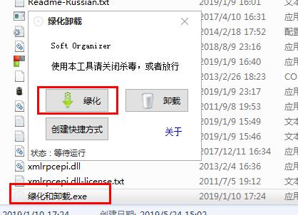Soft Organizer Pro1、打开软件包,首次运行软件之前,先运行【绿化和卸载.exe】进行绿化破解,点击绿化。注:需要先关闭杀毒软件。