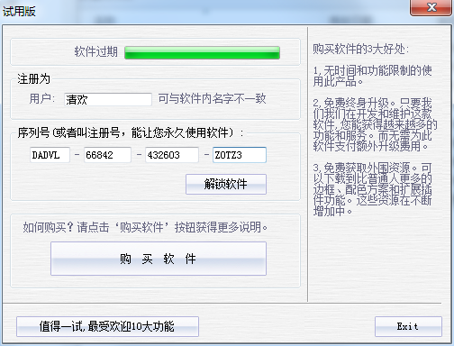 很多朋友进入Turbo Photo会发现它根本没有注册选项,不用担心,当你打开试用版程序,点击“关闭”按钮推出的时候,注册界面就出现了,我们在其注册信息栏中输入下列注册码,即可乘用,如下图所示: