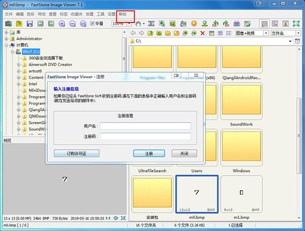 FastStone Image Viewer1、打开软件,软件未注册,点击帮助—输入注册码,弹出注册窗口。