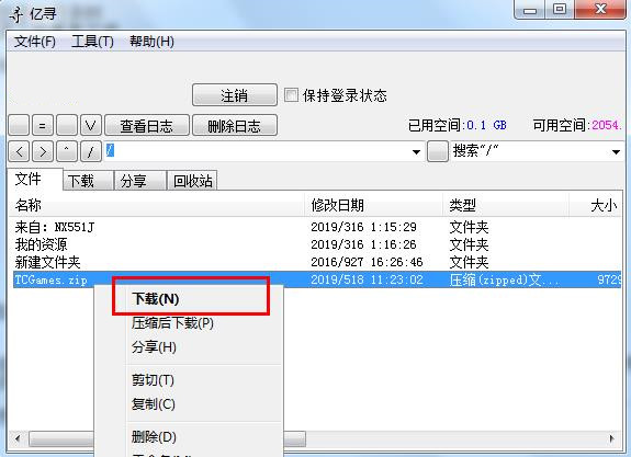 下载文件夹或多个文件 - 选择要下载的文件和文件夹,之后右键选择下载。
