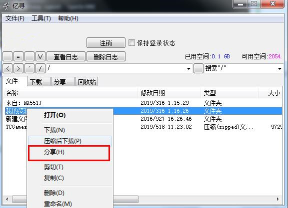选择要分享的文件或文件夹,之后右键选择分享,弹出分享对话框,点击分享按钮。未选中复选框表示永不过期和无密码(即提取码)。也可以自定义密码。
