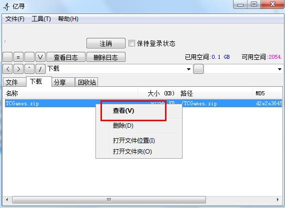 打开下载的文件所在网盘中的目录 - 选择要查看的下载,之后右键选择打开文件位置