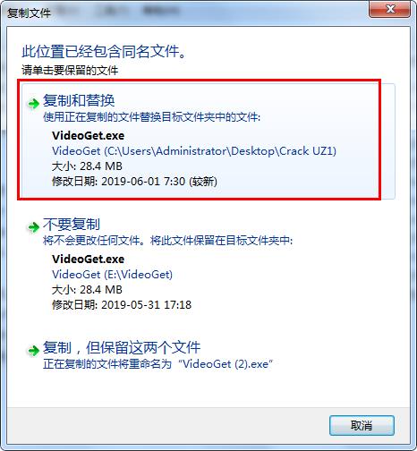 9、打开Crack UZ1文件夹,将文件夹中的“VideoGet.exe”替换到软件安装路径下