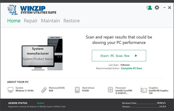 3、打开软件,WinZip System Utilities Suite破解版已激活,可以无限制使用。