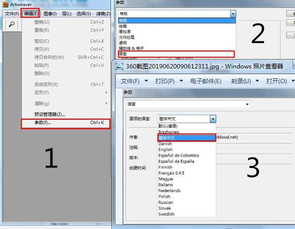 Artweaver如下图,编辑页面选择参数,参数里选择语言,在语言栏里勾选中文,确定之后,重启软件