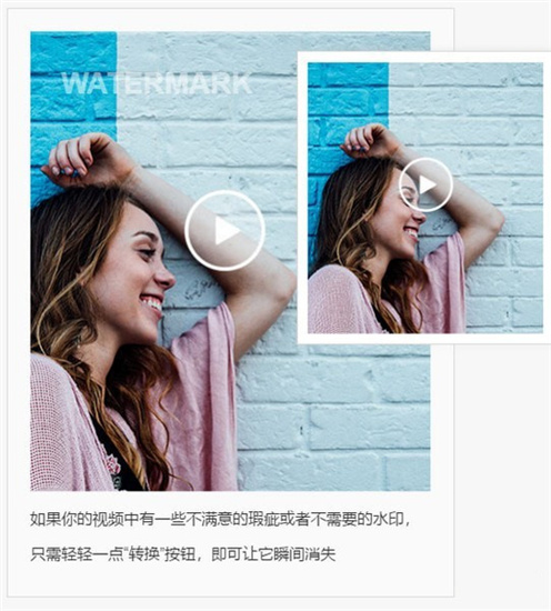 如果你的视频中有一些不满意的瑕疵或者不需要的水印, 只需轻轻一点“转换”按钮,即可让它瞬间消失