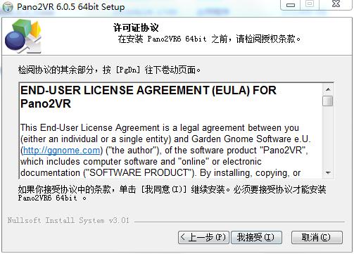 1、下载软件包解压,运行“pano2vr_install64_6_0_5.exe”安装软件,选择语言,默认中文点击确定。