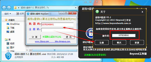 3、在文件中找到“超级U盘锁 5.1 算法注册机 .exe”注册机,将硬件码输入,如图所示