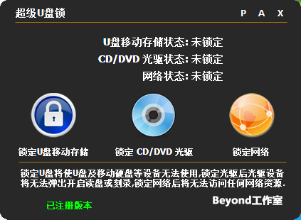 1、可以锁定U盘移动存储设备(不影响USB键盘和鼠标)