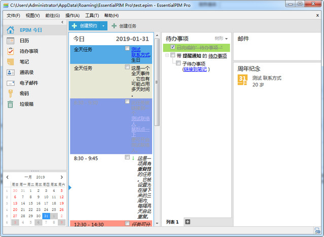 经过多年的开发和积累,EssentialPIM Windows版本已经成为一款灵活直观、易于使用的个人信息管理软件,便携版本、可扩展的导入导出以及同步特性让您主宰您的所有数据。