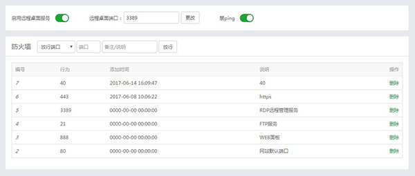 【系统安全】提供远程控制开启关闭服务,远程控制端口更改,禁ping,防火墙端口放行以及操作日志查看。