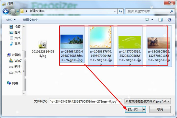 4、支持对图片的批量处理。你可以添加一张图片,也可以一次添加多张图片、一个文件夹。Fotosizer这个软件甚至还带有自动搜索子文件夹中图片的功能!如果需要处理的图片是分门别类放在不同子文件夹中,这个功能绝对会起到事半功倍的效果,也不会给你造成任何困扰。除此之外,除了点击图标添加图片文件之外,也支持使用拖放操作。