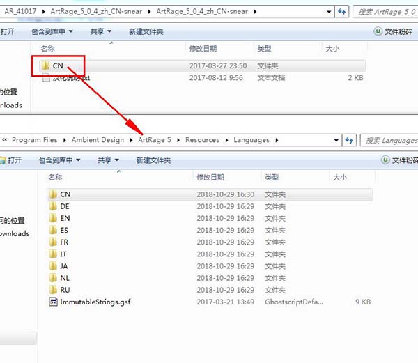1、安装完成之后,ArtRage_5_0_4_zh_CN-snear目录下的CN文件夹复制到软件安装目录的Languages文件夹中,即可完成汉化。