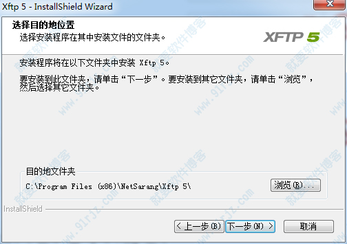 4、选择设置软件安装目录,默认的安装目录为:C:Program Files (x86)NetSarangXftp 5,下一步