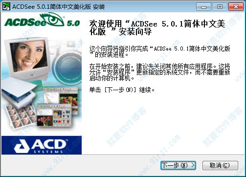 1、下载解压,得到acdsee 5.0 简体中文破解版,双击exe文件依提示安装;