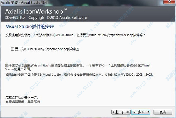5、询问是否要安装IconWorkshop插件,可自定义选择,完成点击下一步
