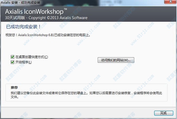 8、勾选“在桌面创建快捷方式”和“开启程序”,完成点击“完成”即可