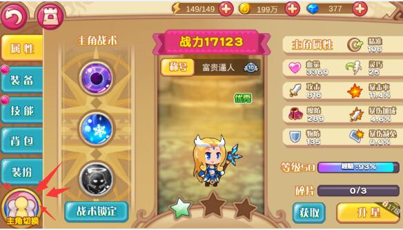 只需在主角界面点击“主角切换”后,便可进行更换,当然需要达成一定方可开启额外主角位置哟。