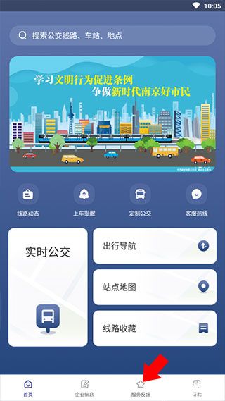 1、下载并打开南京公交在线app,点击下方的服务反馈选项