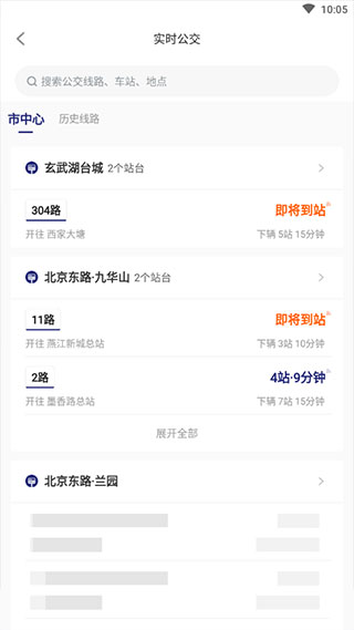 2、进入实时公交页面后,搜索或者选择想要查看的站点、线路信息