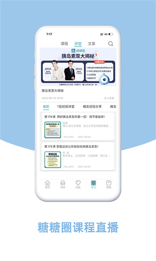3、持续血糖管理服务:公益血糖咨询、持续海量科普文章、每周定期专家甜蜜讲堂直播等。