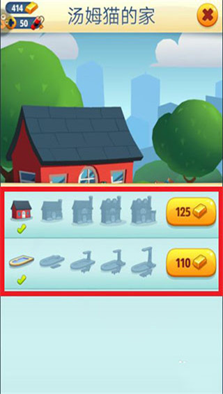 3、建造神奇的家园:用你收集的金条为会说话的汤姆猫家族建造家园。