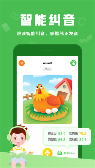 1、系统智能评分,实时的监测孩子英语口音检查,时刻了解学习英语的成果。2、单词发音准确孩子跟着一起读,提供口语的发音,还能改善英语口语的口音问题。