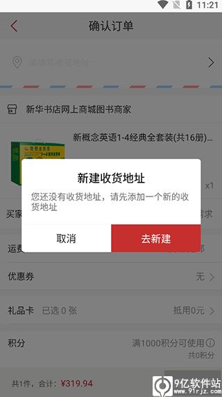 进入之后会弹出叫你填写新建收货地址,点击去新建