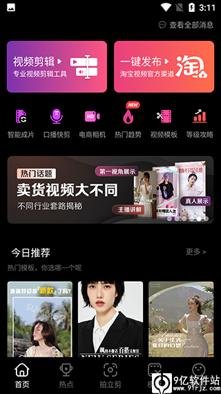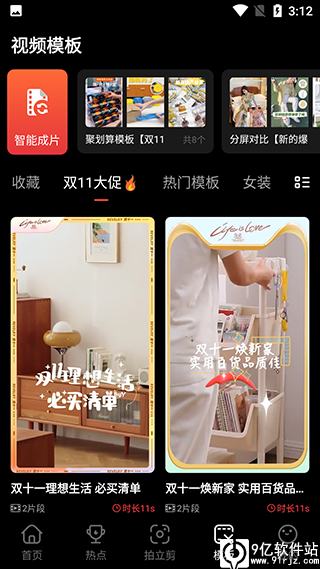 模板剪辑,基于品类的定制模板,导入素材10秒生成带货短视频