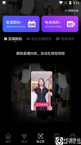 3、点击拍立剪,可以开始翻拍直播内容,自动生成短视频。
