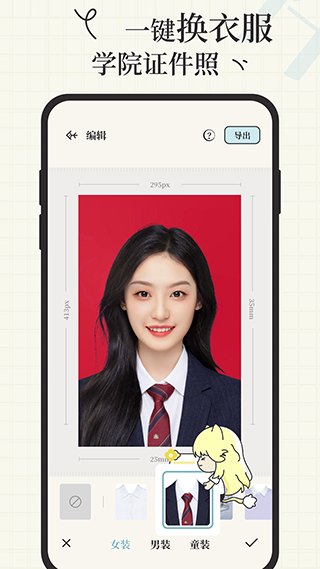 爱证件app不仅提供职业西装、衬衫等正装,还有韩系、日系等学院风热门服装可更换。男装、女装、童装素材齐全。换装毫无违和感,证件照也能美美C位出道!