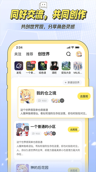 制作简单,可以一键导出高清原质图片,一键创建为角色参与到米仓社区讨论。