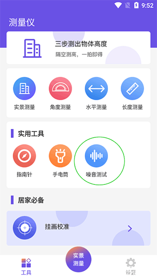 3、如果需要测量噪音的话,就可以点击实用工具栏的噪音测试,就可以测量噪音分贝了。