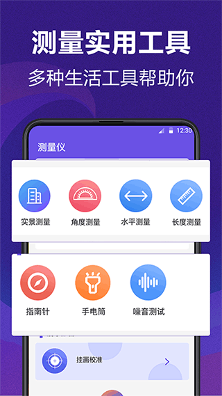 1、测量使用工具,多种生活工具帮助你。2、精准简约指南针,自动定位轻松找到方向。