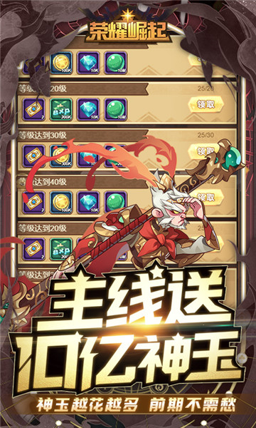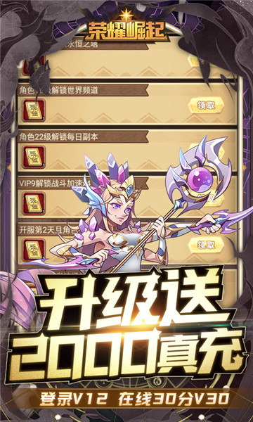 1.荣耀崛起bt版登录送5星圣骑士、38888钻、金币288888、288888经验水晶,在线30分钟即送V302.登录送GM神秘宝箱,每天都可任选一个5星英雄,持续5天
