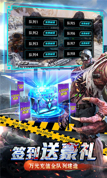 1、生化危城满v版签到领2万充值,无限抽建筑加速卡2、免费激活8队列建造空间,城市建造永不停工。