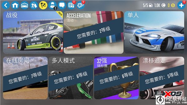1、在9亿软件站下载好carx漂移赛车2破解版游戏,进入后即可选择自己的操作模式