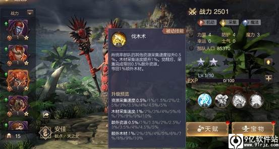 安佳满星后加除木材外的其他资源采集速度百分之五以及百分之十的木材采集速度,觉醒后可以额外获取百分之五的采集资源和百分之十的木材,是个主木材采集的英雄。