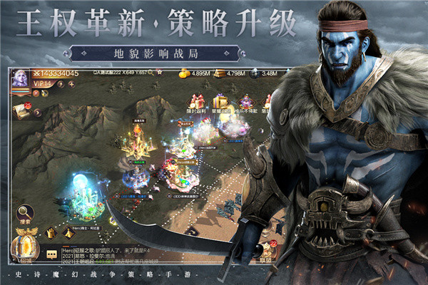 大地图战斗即时策略:行军过程中可随时调整行军路线,声东击西。同时根据战局需要,调动多只军队加入战场,还可以邀请盟友派兵支援,根据战局发展策略性补充兵种,策略瞬息万变。