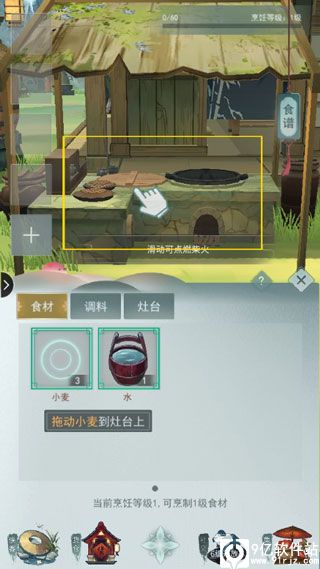 拖动食材至灶台之上,滑动点燃柴火,多次滑动即可完成美食烹饪。