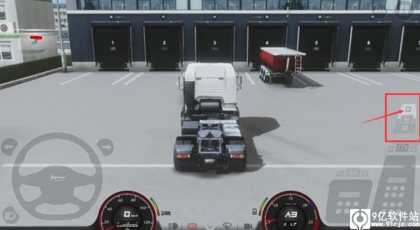 2、点击右上角菜单,点击左侧钥匙图标启动卡车,即可开始按踏板操作,坐标为方向盘,右侧为刹车和油门,油门上方为前进和倒挡;