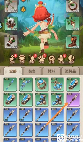 2、接着在装备选择界面点击选择五阶紫色武器。