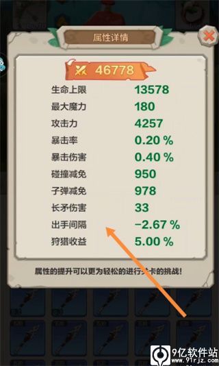 3、选择好武器后点击属性详情进行查看,然后进入战斗界面。
