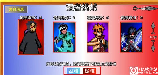 像素火影最新版游戏的玩法模式也是很丰富,包含了强者挑战、无尽试炼、演练、备战等等,同时当你玩得够多了还能解锁不同的成就,现在让我来给大家具体讲解一下各个模式,首先是强者挑战,其中有四位强者可供选择,强敌者挑战boSs不同于普通角色,他们会得到特殊的强化,因此难度极高。而系统会根据击败目标所消耗的时间和剩余血量决定最终的得分,不得不说该模式适合喜欢高难度挑战的玩家体验,而无尽试炼则是闯关,需要注意的是每层胜利即会恢复总血量的10%,而每4层就会有一个增益buff,目前层数为200层,非常有挑战性,而演练和备战模式就很轻松了,主要是让你熟悉下操作技巧,总之,如果你是火影迷,同时又对这种模式感到兴趣的话,那就千万不要错过这款像素火影破面带土最新版了!快来9亿软件站下载吧!