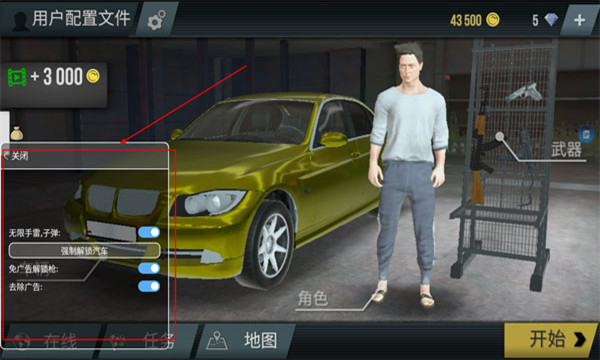 游戏提供开发者功能菜单,玩家可以免广告解锁枪、解锁汽车等,并可以获得大量金币,需要注意的是车辆必须要到车库才能使用!祝您在9亿软件站玩得愉快!火力全开2城市狂热破解版特色