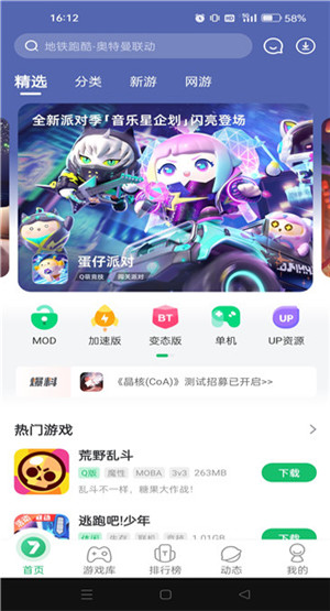 这款7723游戏盒正版软件分为了首页、游戏库、排行榜、动态和我的五大板块,其中打开软件映入眼帘的便是首页推荐专区,在这里你可以清楚地识别到各类型的手游,像MOD、加速版、变态版、单机和UP资源都包含在内,同时每日首页都会更新热门的单机、网游于此,让你畅享不停,右边的游戏库板块则能让你从多个方面寻找到自己喜欢的,比如从游戏的玩法、画风、题材等多角度寻找,相信一定能够找到满足你胃口的游戏,排行榜呢则分别罗列了新游榜、热游榜等等,都是真实数据评测而来。